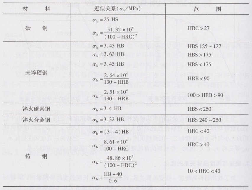 現(xiàn)將一些金屬材料的硬度與強(qiáng)度換算關(guān)系式列于下表。