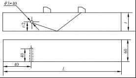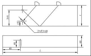 E.2.2 相同的儀器和探頭,在相同的起始靈敏度條件下探測(cè)試塊上 Φ3mm×40mm橫孔,直射波探下孔,一次反射波探上孔(圖E.2)。