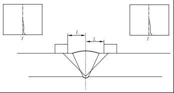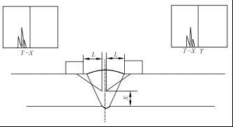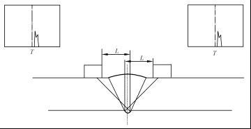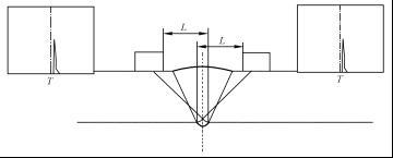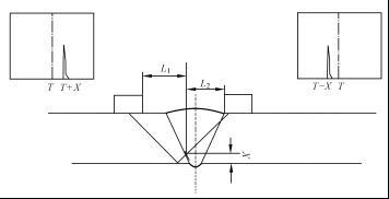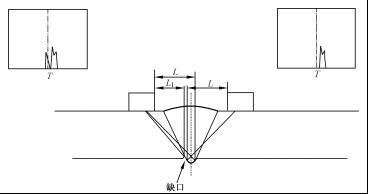注:兩側(cè)同時(shí)探測(cè)水平定位在焊縫中心遠(yuǎn)離探頭一側(cè)為偽缺陷。