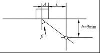 利用DL-1型試塊上,深度h=5mm的 Φ1mm通孔進(jìn)行測(cè)定,將探頭試塊上如圖I.2位置,找出h=5mm, Φ1mm通孔最大回波,測(cè)量探頭前端至 Φ1mm通孔距離L,則探頭折射角