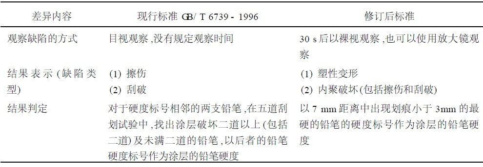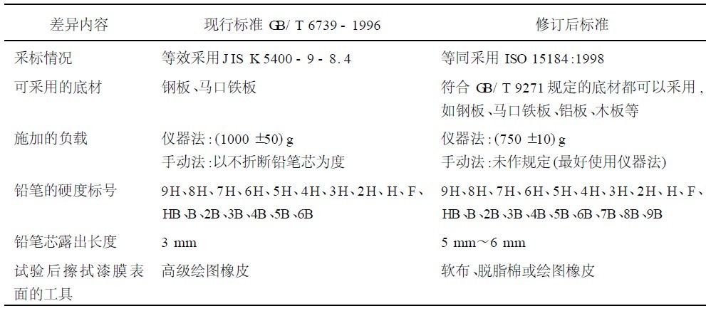 鉛筆法測(cè)定漆膜硬度一、修訂前后的主要技術(shù)差異