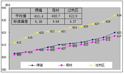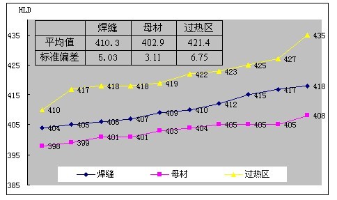 ②過熱區(qū)表層里氏硬度值一般不超過母材表層里氏硬度值的105%。