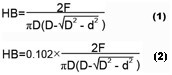 在公式中:F - 試驗力(式1中F的單位為kgf,式2中F的單位為N);D - 壓頭球直徑(mm);d - 壓痕直徑(mm)。