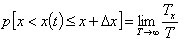 當(dāng)T趨向無(wú)窮大時(shí),這一比值就趨于幅值x(t)的瞬時(shí)值落在Δx區(qū)間內(nèi)的概率: