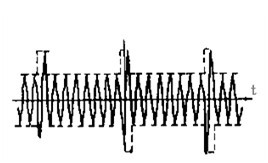 當(dāng)齒輪出現(xiàn)局部缺陷時(shí),例如:斷齒、或大的剝落等局部缺陷,齒輪每轉(zhuǎn)一周時(shí)就會(huì)產(chǎn)生一個(gè)時(shí)域包絡(luò)較窄的沖擊脈沖(這個(gè)沖擊脈沖的頻率就等于齒輪的轉(zhuǎn)速頻率fr),齒輪的嚙合頻率(fm)被這個(gè)沖擊脈沖所調(diào)制。
