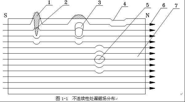 漏磁場(chǎng)探傷:是利用鐵磁性材料或工件磁化后,在表面和近表面如有不連續(xù)性(材料的均質(zhì)狀態(tài)即致密性受到破壞)存在,則在不連續(xù)性處磁力線離開(kāi)工件和進(jìn)入工件表面發(fā)生局部畸變產(chǎn)生磁極,并形成可檢測(cè)的漏磁場(chǎng)進(jìn)行探傷的方法。
