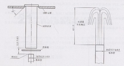 1)淬火裝置由支架和噴水管組成。淬火裝置噴水管口內(nèi)徑為12.5±0.5mm。試樣吊掛在支架上,用向上噴射的水流使試樣端面淬火。