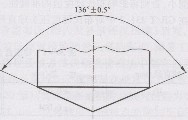 (3)金剛石棱錐體錐頂兩相對面夾角應(yīng)為136°±0.5°見下圖。