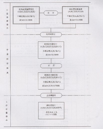 金屬洛氏硬度計(jì)量器具檢定系統(tǒng)見下圖: