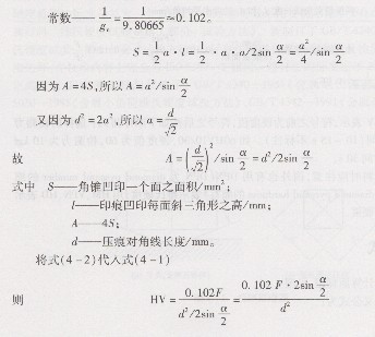 式中結(jié)果數(shù)值與檢測力原用千克力相同,這是因為力值用N為單位時,是定義9.807 N/mm²為一維氏硬度單位(9.807×0.102≈1)。